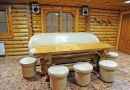 Друзья. Хочу оставить отзыв по бане Русский пар. Отдыхали 28.11.2015 компанией из 6 человек, семьями. Заказ оформляли за месяц. По приезду получили инструкции как и чем пользоваться, что на самом деле очень не маловажно. Персонал приветливый все рассказал показал. Заказывали домик №1 с бассейном. Вениками пользоваться можно, но нельзя использовать мед и т.п. Пар шикарный зависит от поддавания, тепература регулируется открытием дверцы.